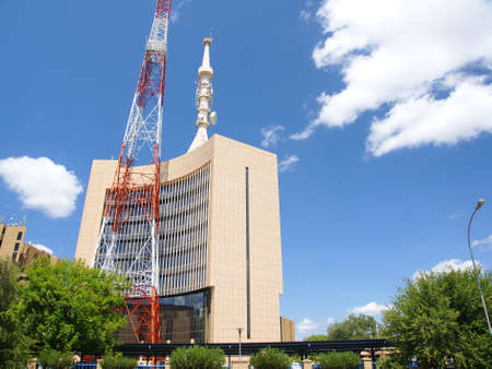 BLOEMFONTEIN, SOUTH AFRICA - JULY 19, 2015: The Bram Fischer Building local municipality on the right and the Provincial Government Building, which houses a rotating restaurant on top, on the left