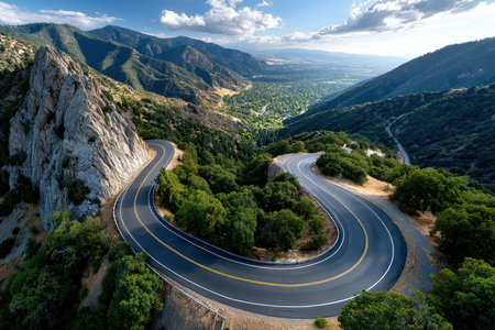 An aerial view of a winding mountain road