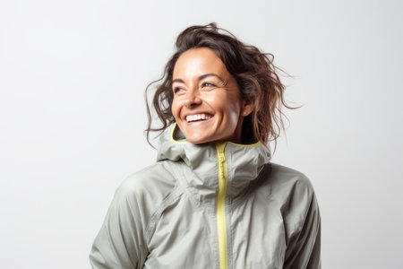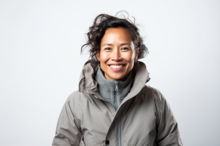 Portrait of a happy young woman in winter jacket isolated on a white background