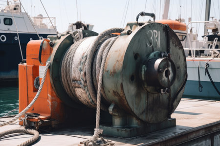 Anchor winch with sturdy chain on a voyage boat, ensuring stability and security