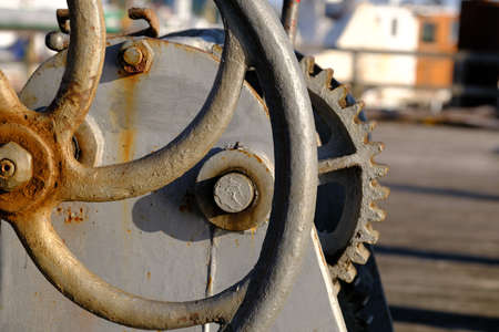 Close up of rusty metallic lifting mechanism in Sandefjord Quay