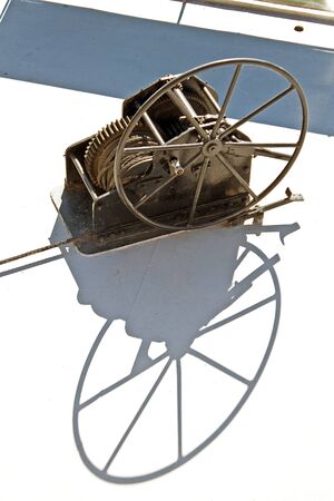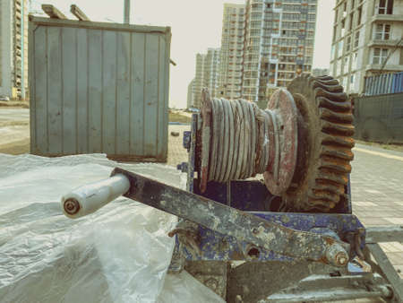 Durable iron winch on the ship for lifting and lowering boats into the water