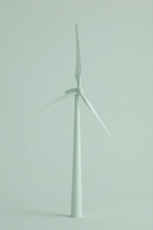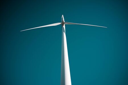 Wind turbine with blue sky background. Alternative energy sources. Renewable energy.