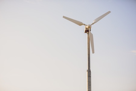 Wind generator, on a background of blue sky. An alternative source of electricity. Sunny day.