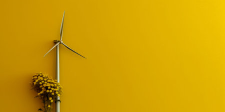 An AI generated illustration of a wind turbine with a cluster of flowers on the yellow background