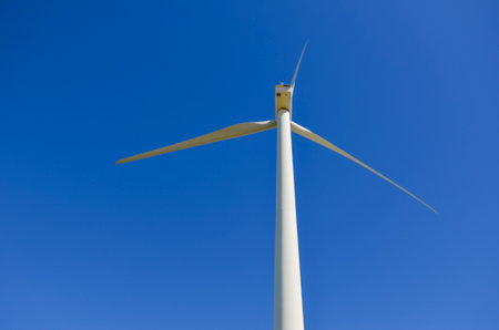 Wind turbine generating clean energy on a sunny day, promoting sustainability and environmental conservation