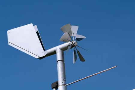 Weather indicator, anemometer against clear blue sky