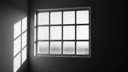 A serene window scene showcasing soft light filtering through a dark room. This image evokes feelings of calm and tranquility with minimalistic design elements.