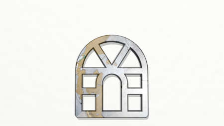 gardening house on the wall. 3D illustration of metallic sculpture over a white background with mild texture. green and agriculture