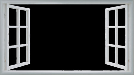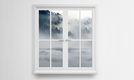 double-leaf opened window on a white wall. aerial illustration for brochures, web design. 3d rendering