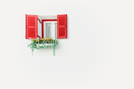 Colorful vintage window on the white wall with copy space.
