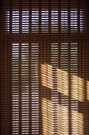 Abstract of light through wooden blind window in closed position.