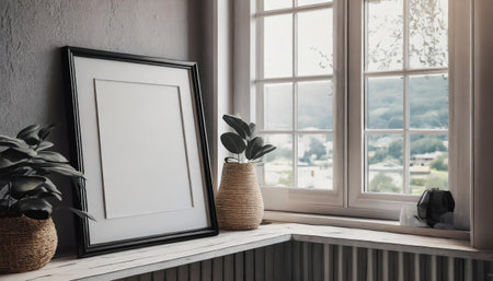 This captivating scene features a cozy window adorned with photographs and a charming potted plant, inviting warmth and nostalgia into a bright space.