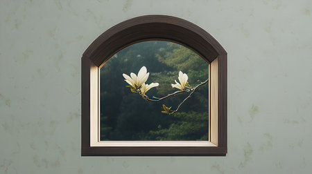 Magnolia flowers in a window frame. 3d rendering, illustration
