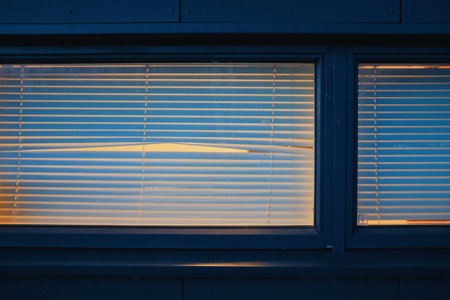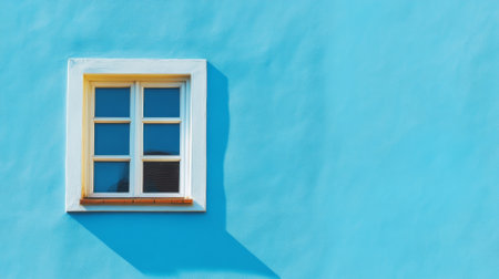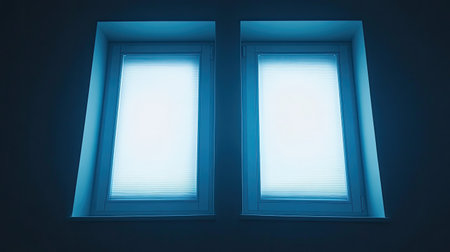 A serene view of two windows bathed in soft blue light, creating a tranquil and inviting atmosphere in a modern interior space. Ideal for design inspiration.