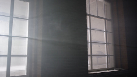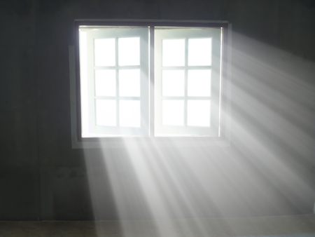 Sunlight streaming through an old window with smoke, atmospheric light concept