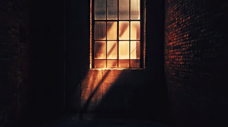 An atmospheric image showcasing a dimly lit alleyway with a glowing window, creating captivating shadows on brick walls and evoking a sense of mystery.