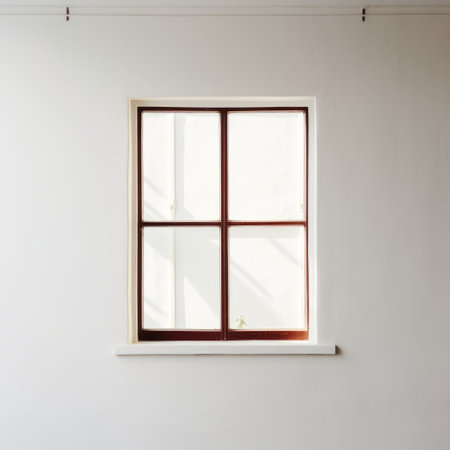 a window in a white room with a wooden frame, showcasing spot metering photography technique. the light gold and maroon tones add a touch of urban culture exploration. the overall aesthetic exudes timeless artistry, with a simple and functional design. the unpolished authenticity of the scene creates a captivating visual experience. ai generated