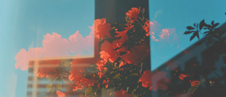 Urban and natural harmony in double exposure of concrete and flowers