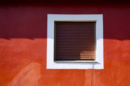 window on the red facade of the building in Bilbao city spain