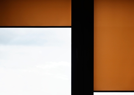 Window with sand coloured roll blinds. Concept image