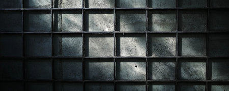 Industrial design texture of metal grid on concrete wall with dramatic shadows