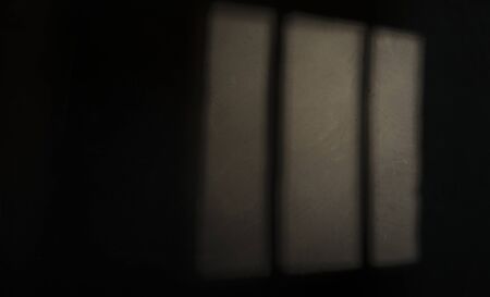 Sunlight illuminating to wall from window of closed metallic door cage in dark