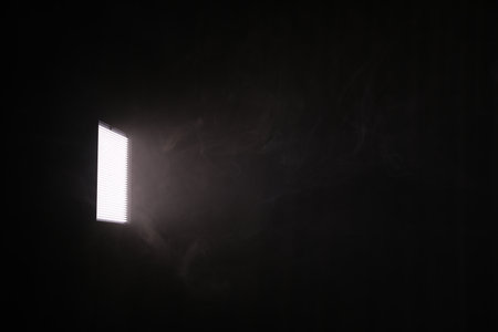 Window in a dark room with a bright light shining through. Beam of light in the darkness