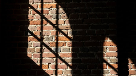 A serene scene featuring light streaming through a rustic brick window, creating a warm and inviting atmosphere. The interplay of light and shadow evokes a sense of peace and tranquility.