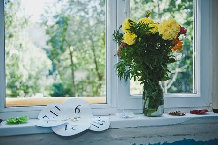 Flowers on the windowsill.