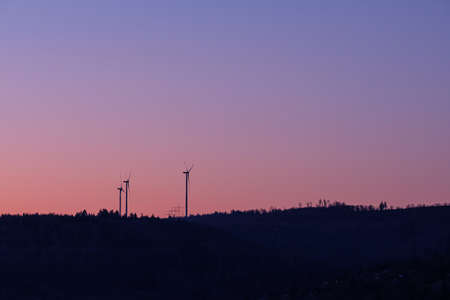 Beautiful wind turbine on the field in twilight time background