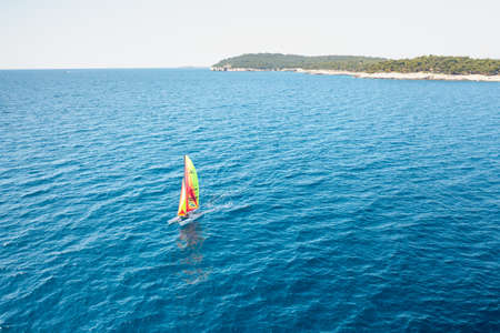 Portable sailboat windsurfing catamaran in blue water of Adriatic Sea