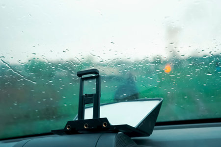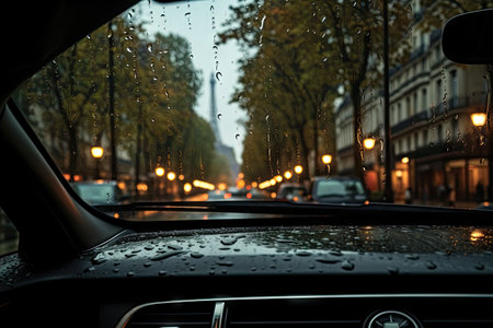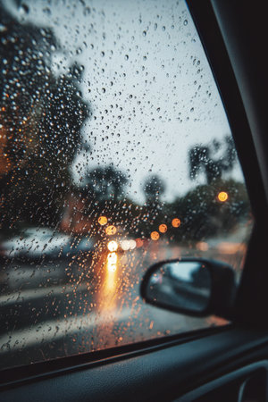 Rainy Day Car Interior View with Raindrops on Window - Moody Weather Scene