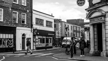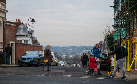 London/UK-1/08/18: crossroad of Hill and Red Lion Streets and George Street, main commercial thoroughfare and high street in Richmond, it also was one of the first streets to be developed in the town