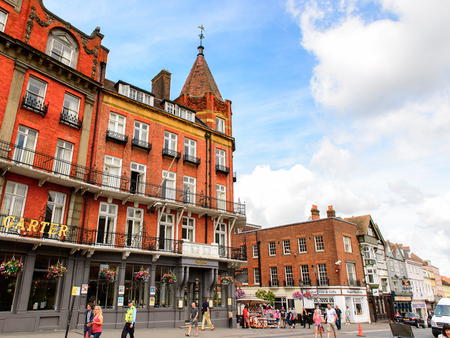 WINDSOR, ENGLAND - JULY 21, 2016: Architecture of the center of Windsor,a town in the Royal Borough of Windsor and Maidenhead in Berkshire, England