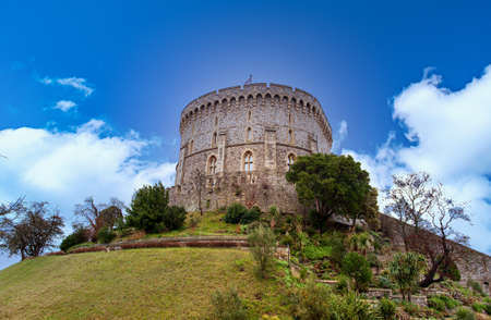 Windsor, UK - April 2018: The Round Tower in the Middle Ward of Windsor Castle, a royal residence at Windsor in county of Berkshire, England, UK