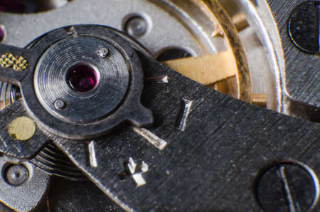 Macro photo of the mechanism of a clock. Close-up