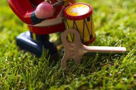 Old tin classic toy drummer, Vintage Wind Up Mechanical Soldier Drummer Clockwork Tin Toy