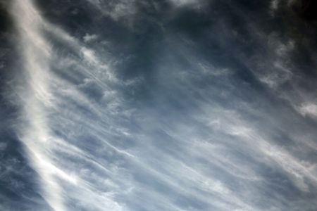 Wind swept white clouds and blue sky on a sunny day