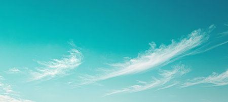 A Beautiful Aquamarine Sky Panorama with Wispy White Clouds and Soft Sunlight for Serenity and Calm