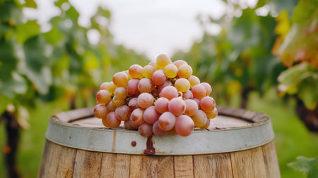 Bunch of table grapes. Pink grape, widely used as a source of raw material for wine making, due to its aroma and flavor characteristics. Fruit flavored and sweet.