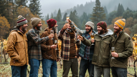 Friends Toasting with White Wine in a Vineyard, Celebrating Friendship and Good Times