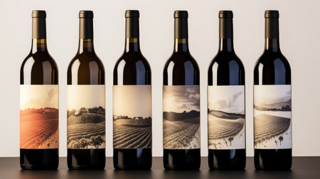 close-up of wine bottle labels with floral theme, created with generative ai
