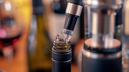 A closeup of a handheld air pump wine or with a clear chamber showing the vacuum seal being created to pop open the bottle with ease