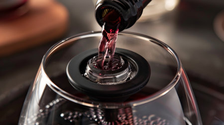 Detailed view of the silicone seal around the spout of a wine aerator ensuring a tight fit and no spills during use