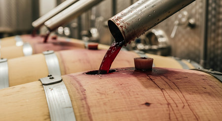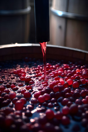 Process of making red wine at a winery. Winemaking
