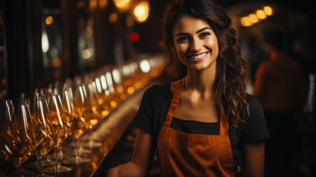 Portrait of a young female sommelier in an apron offering wine tasting. Concept Portrait Photography, Sommelier, Apron, Wine Tasting, Female Professional