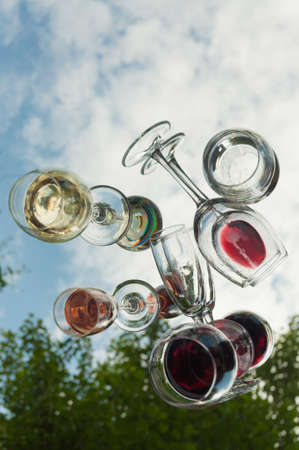 Lots of glasses of rosé wine at the wine tasting. Rose wine and variety concept