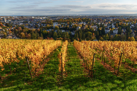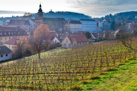Vineyard plantations in autumn with commanding views of the Bamberg city in Germany