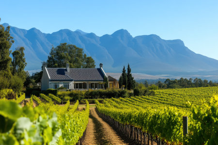 Panorama of a vineyard in the south of Franschhoek
